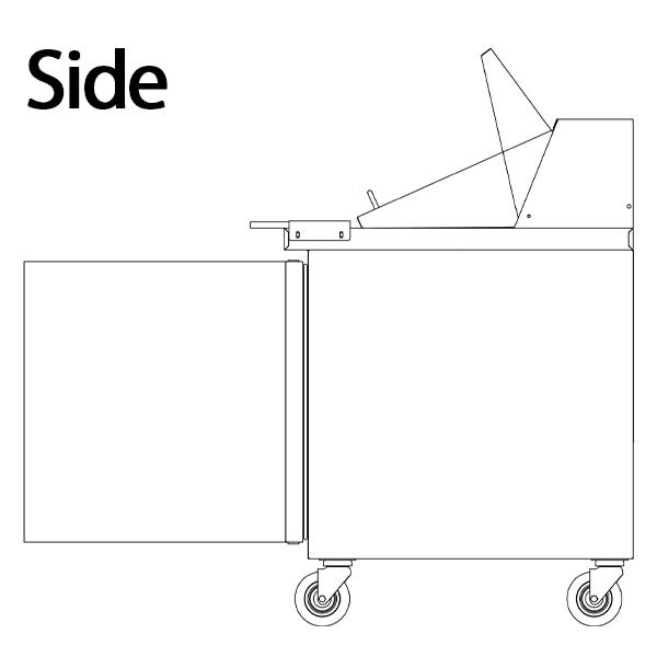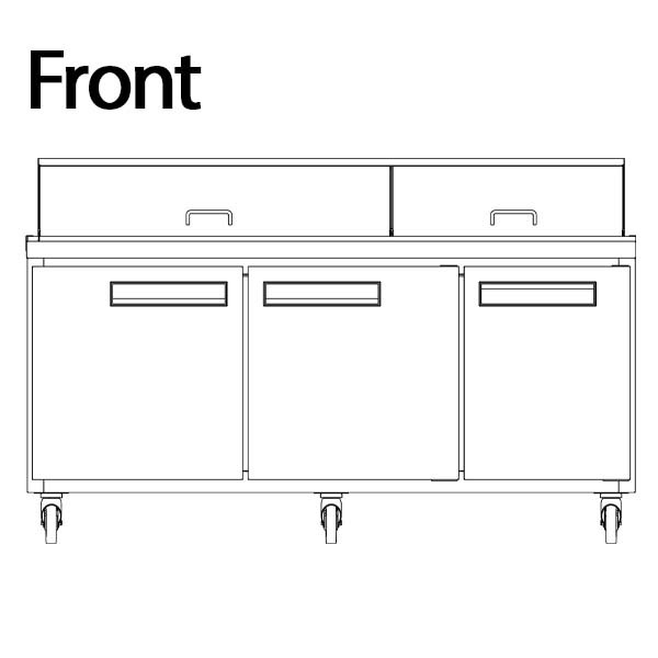 Mega Top Sandwich/Salad Prep Table, three-section, 72"W, bottom mount self-contained refrigeration, digital temperature control, 34°F (1°C) to 47°F (8°C) temperature range, automatic defrost, (1) self-closing solid door, (3) adjustable shelves, (30) 1/6 size pans (included), stainless steel interior & exterior, 5" casters (2 braked), R290 refrigerant, 110v/60/1-ph, cETLus, ETL-Sanitation
